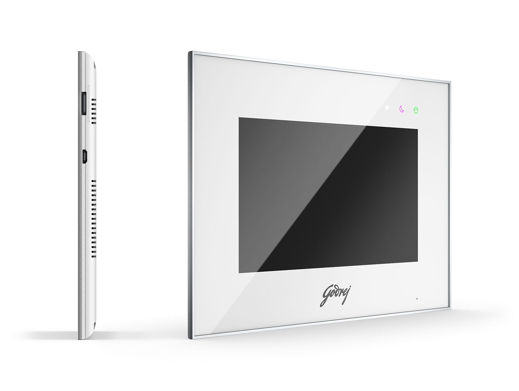 Product renderings for Godrej’s SeeThru video door phone.